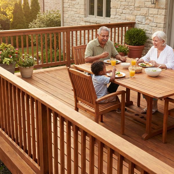 For a classic, warm aesthetic, nothing beats the look of natural timber. Using a wood fence for deck railings or borders creates a cohesive, traditional appearance that blends beautifully with the architecture of many San Antonio and Austin homes. You can stain the fence to match your deck floor exactly.